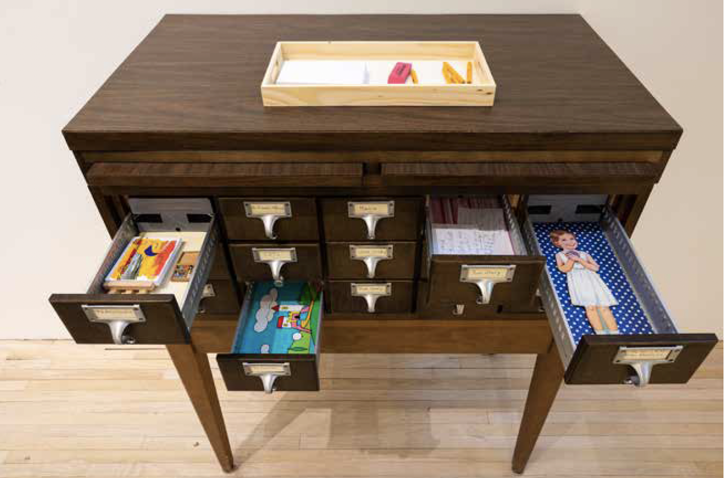 Ingeractive card catalog, designed for viewer participation at The Girl Who Drew Memories